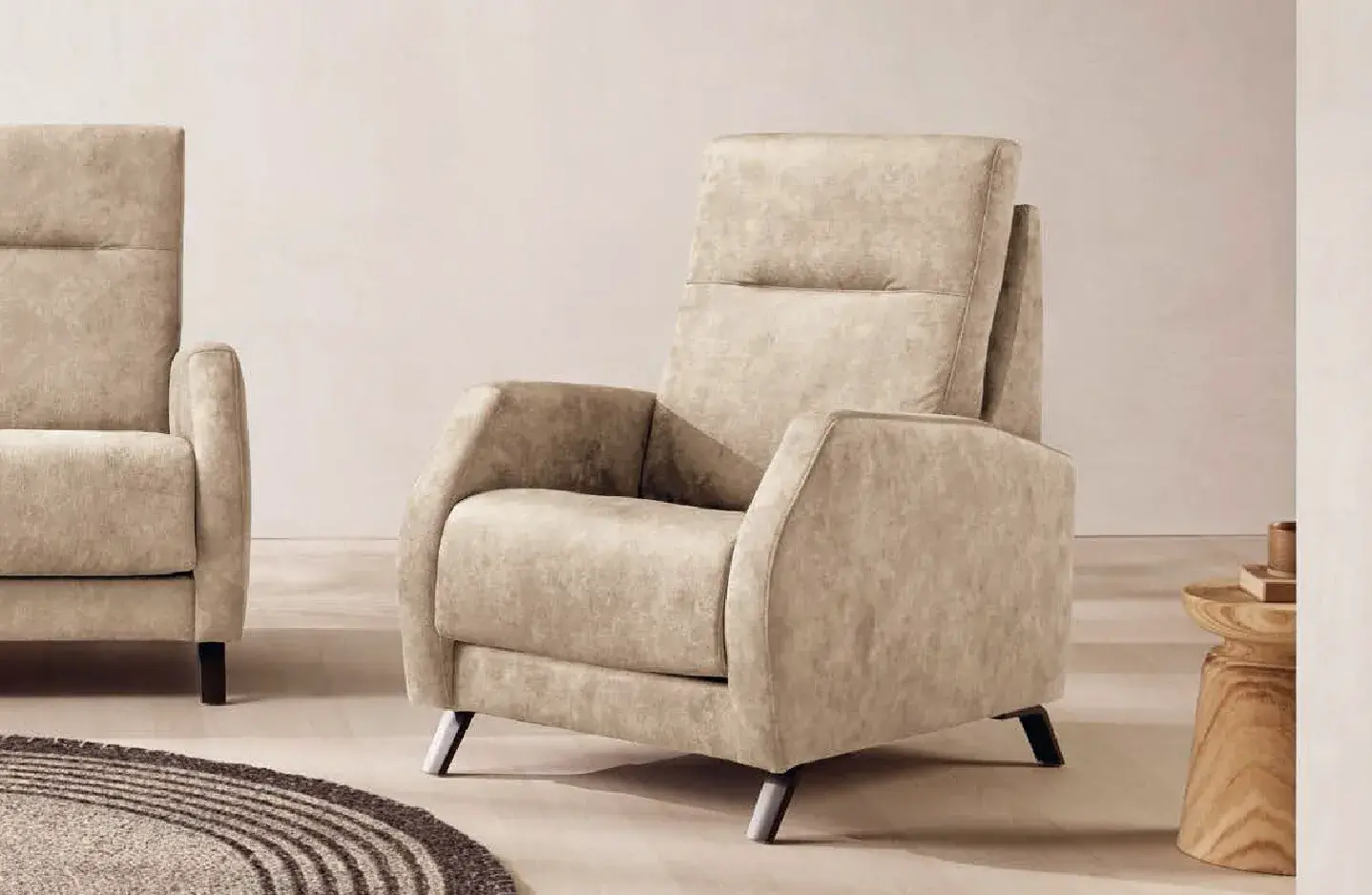 Cojín asiento: Goma-espuma de 32 kg. y bloque de muelles ensacados.